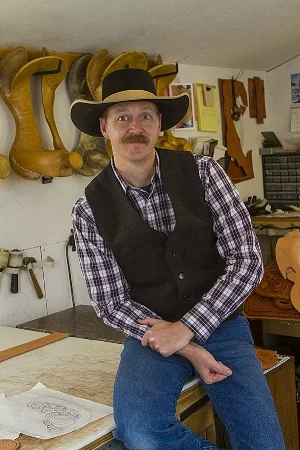 This portrait of Justin Thorson, saddle maker, is flat without flash.